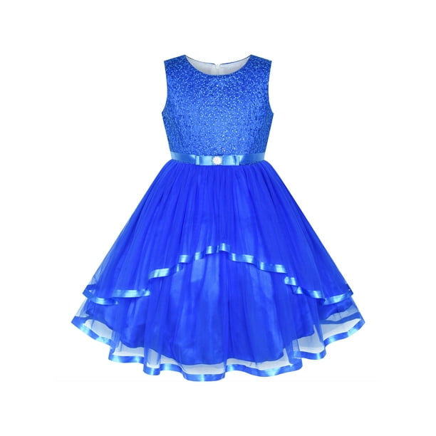 Sunny Fashion Flower Girls Dress Cobalt Blue Belted Wedding Party Bridesmaid 10 Years Walmart Com Walmart Com